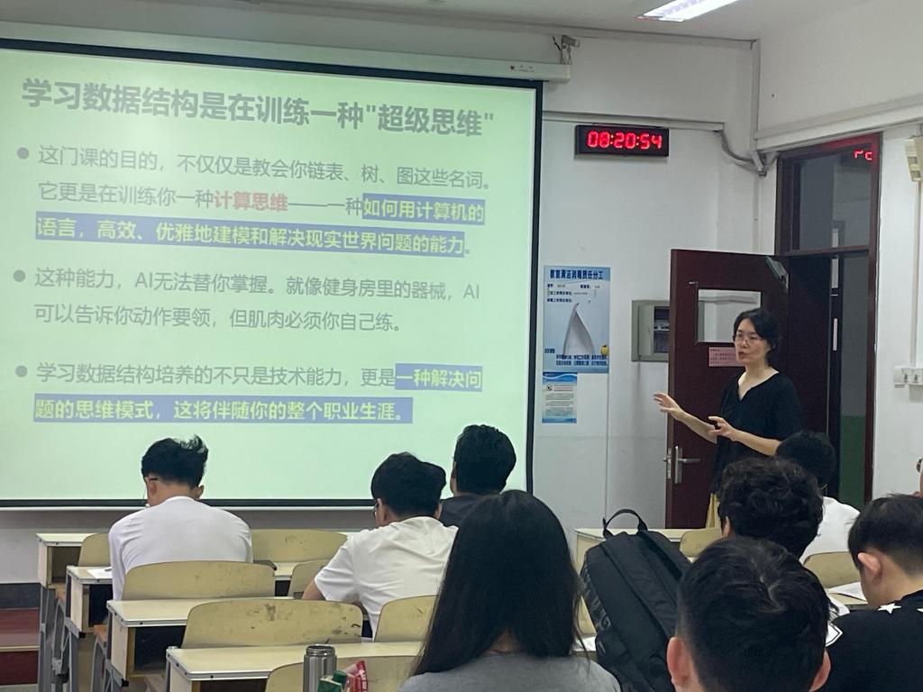 潘秋鸿和同学们一起听取了赵其鲁老师的《计算机视觉》课程、孙仁诚老师的《大数据分析方法》课程,于佳认真听取了高文静老师的《算法设计与分析》课程,并在课后与老师和同学们进行了交流。