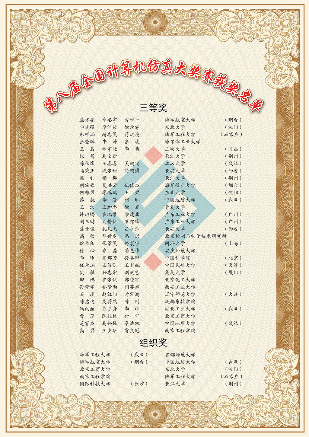 近日,第八届全国计算机仿真大奖赛落下帷幕,草榴社区 研究生宋金涛、高珠珠、衣柳成荣获全国二等奖,王洁、徐娟、王加忠荣获全国三等奖。魏伟波副教授荣获优秀辅导奖。