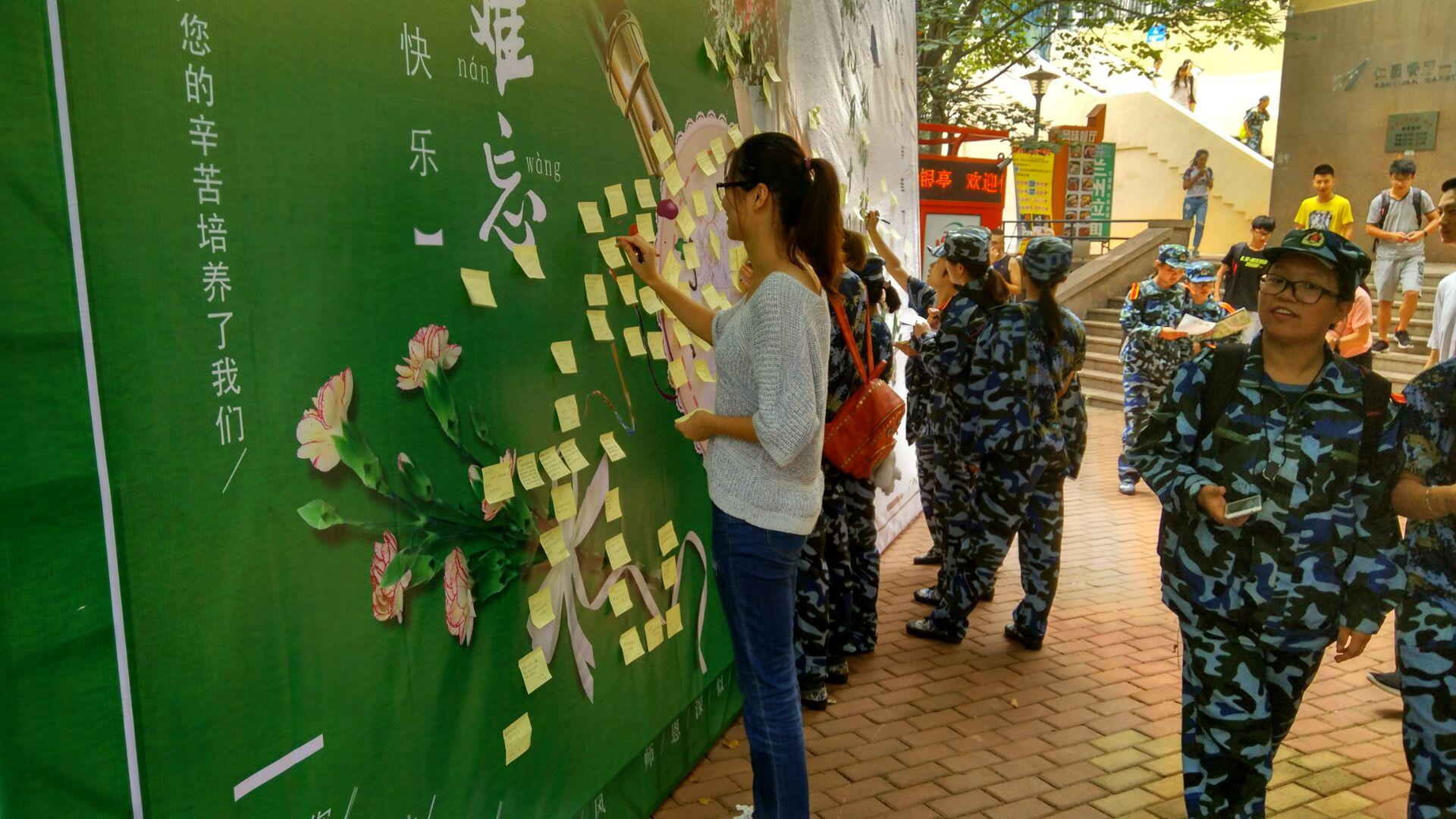 上课前,2016级计算机科学技术二班的同学在黑板上写满给老师的留言;2015级信息安全专业的同学们在班长的带领下,召开了题为“感恩教师节”的主题班会;2015级物联网专业则的学生代表来到了办公室,将手工制作的礼物交到老师手中;在校园内教师节背景墙上,各班同学也都写下了自己心中最想对老师说的一句话。同时,院学生会为老师们精心准备了节日贺卡,正面手绘民族风图案,反面写满对老师的祝福,工工整整、一笔一划都是对老师的感恩。