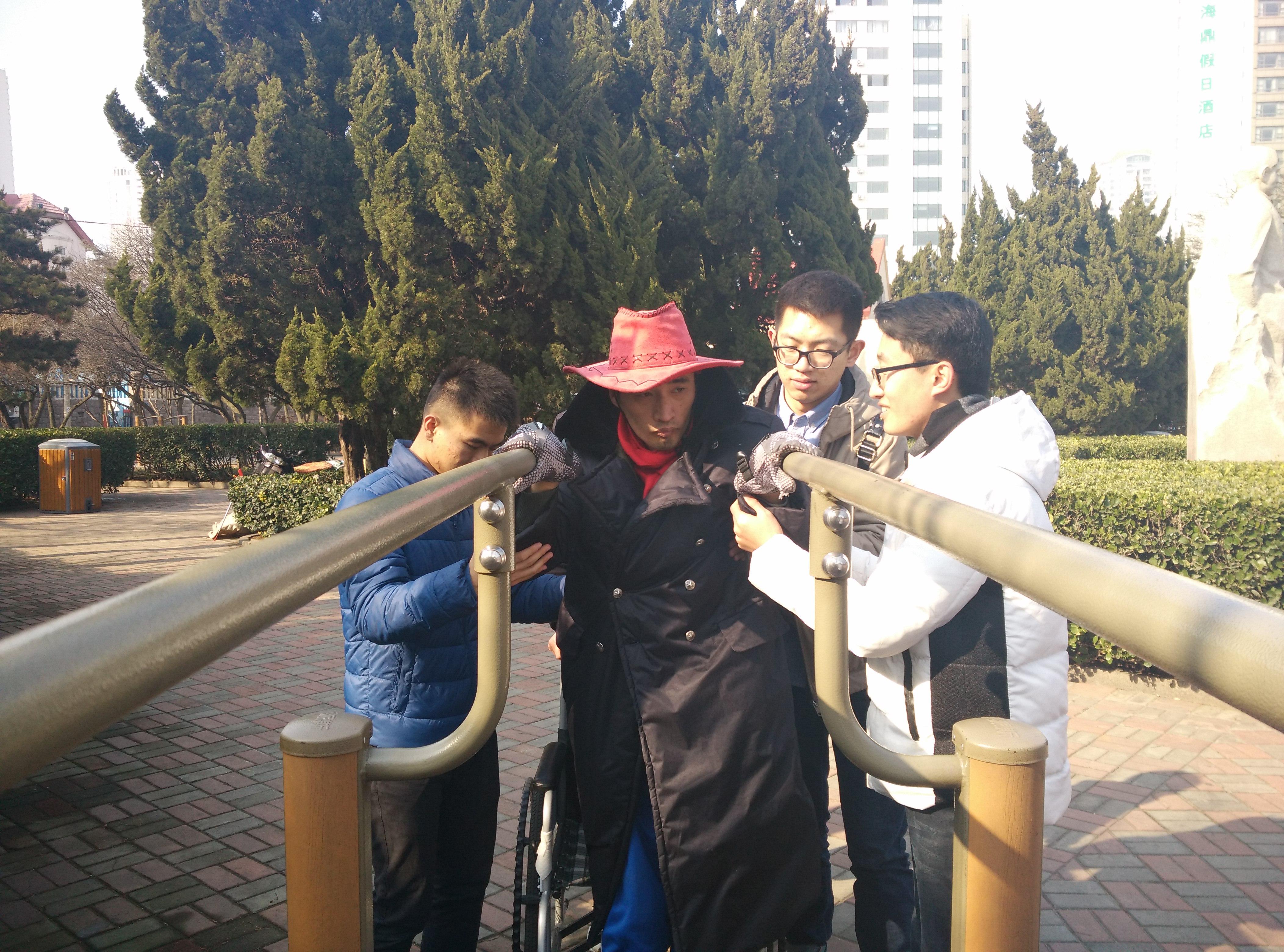 学生志愿者坚持每周两次陪同栾世杰进行身体康复训练。今后我们会继续竭尽所能,帮助他走出困境。