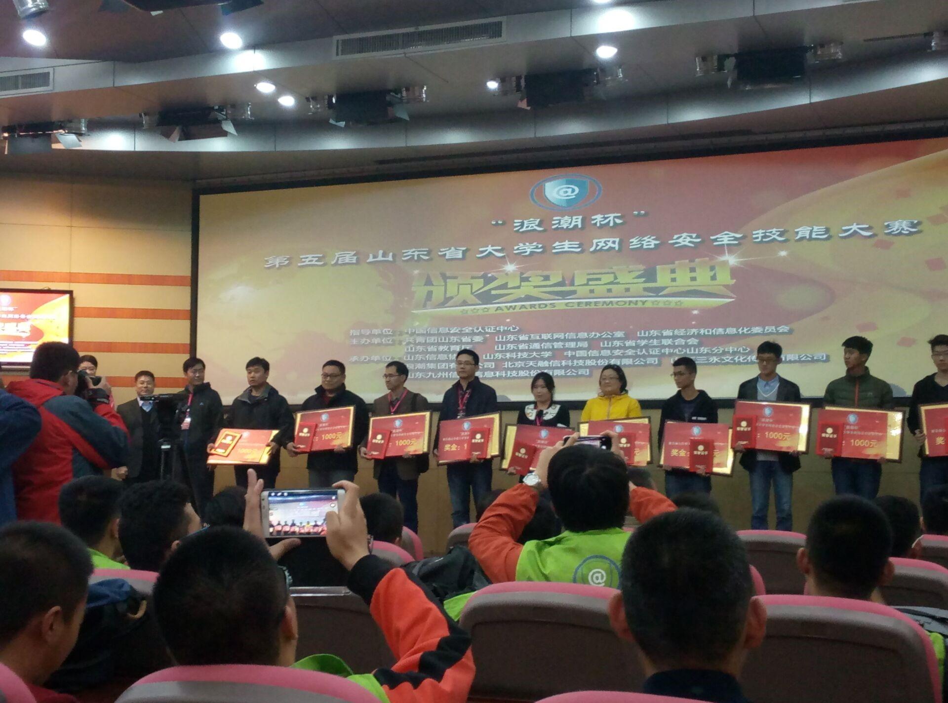 本次大赛由中国信息安全认证中心指导,省教育厅、山东省互联网办公室、山东信息协会、浪潮集团联合承办。比赛总耗时7小时无间断,团队经受了知识、技能和耐力的三重考验。经过激烈的角逐,我校团队最终在全省50多支队伍中脱颖而出,取得了团体第8名的好成绩,队员张子墨获得个人第5名。