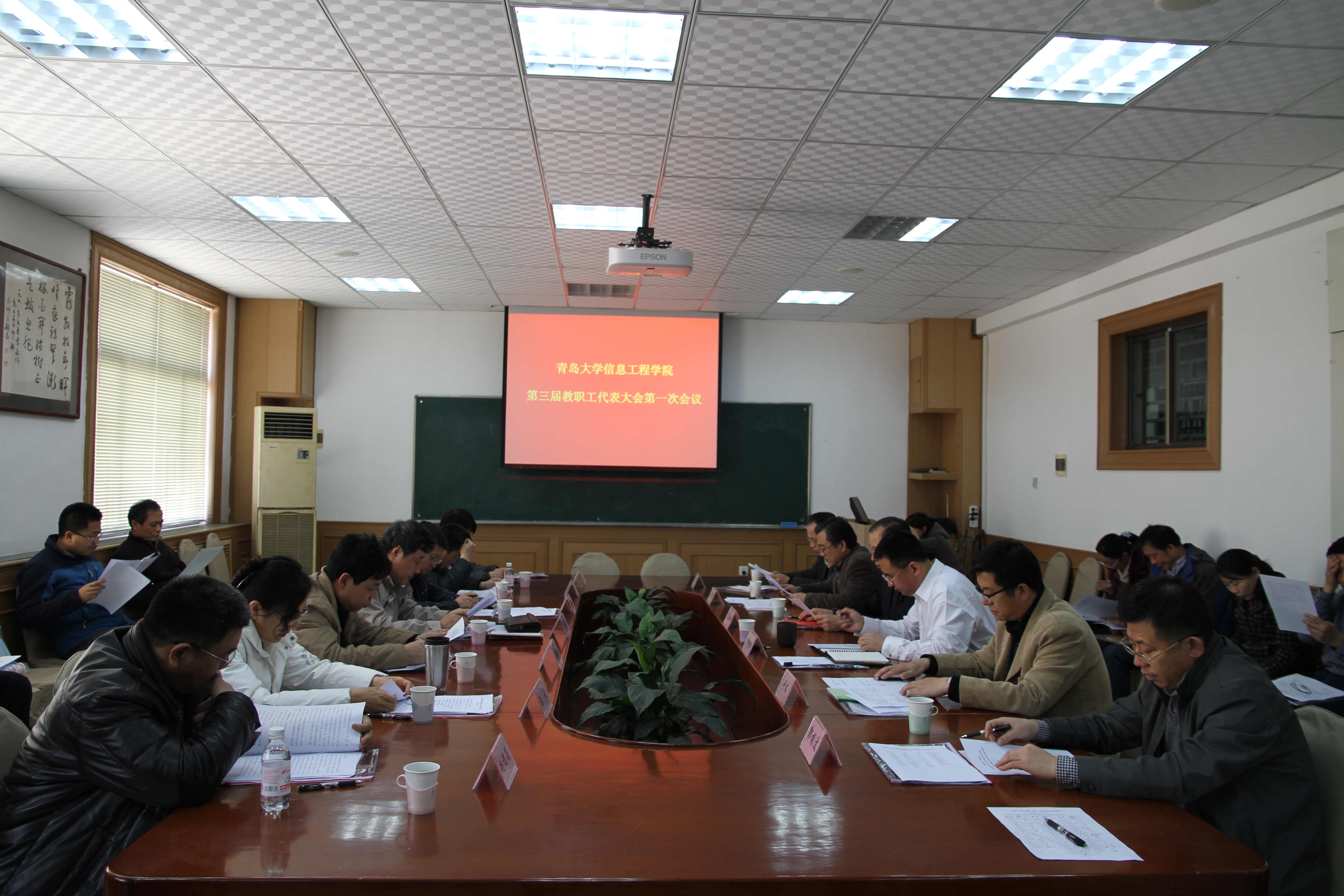 4月18日下午,信息工程学院在博知楼510会议室召开第三届教职工代表大会第一次会议。校工会副主席李正仁到会致辞,院长潘振宽教授作工作报告,院党总支书记尹增刚同志作总结讲话。大会在通过《关于院长工作报告的决议》后圆满落幕。
