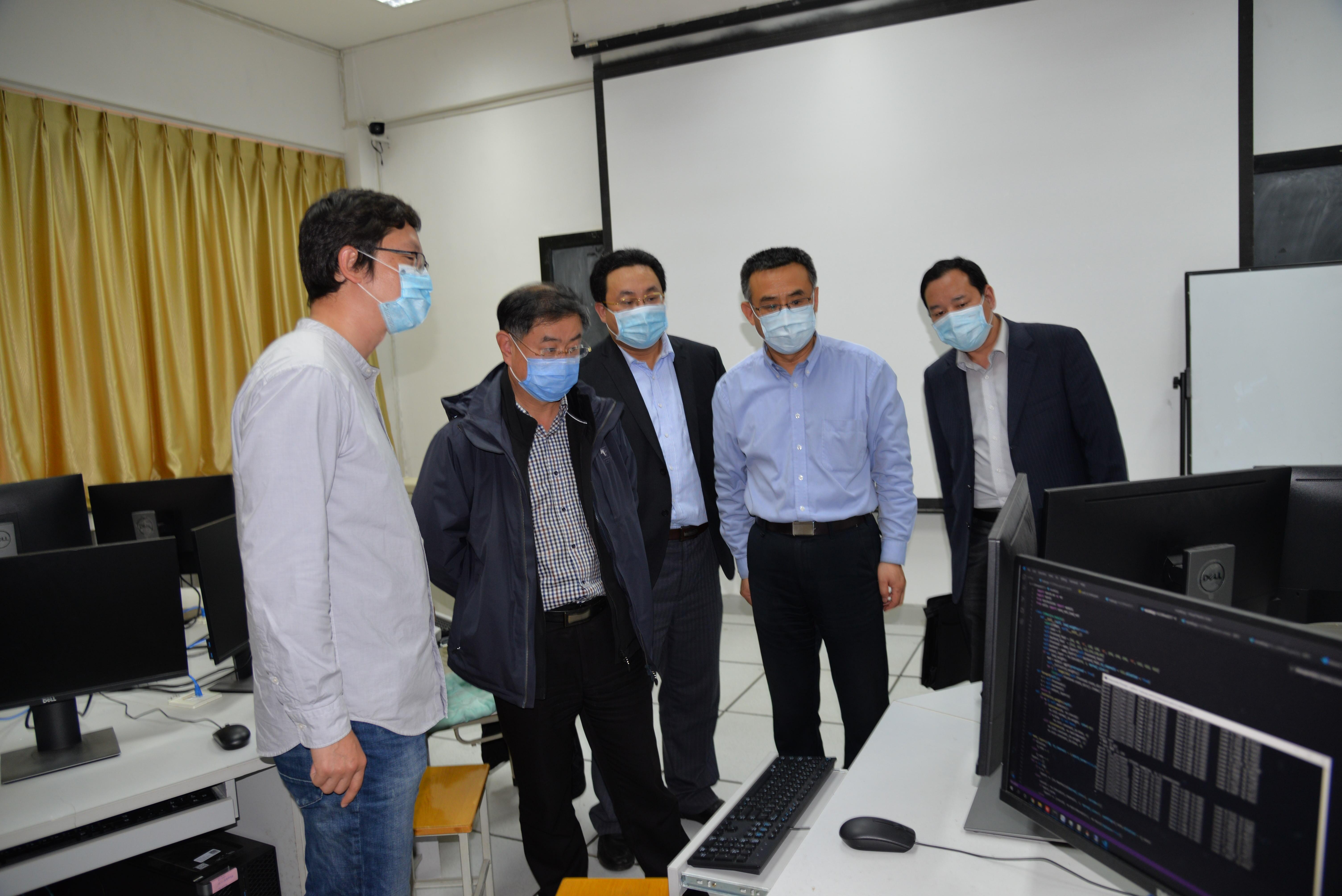 夏东伟校长先后来到院机关办公室、博知楼5楼文化走廊、“点亮未来”工作室、图灵创新实验班实验室、人工智能实验室和服务器运行室,了解学院党政管理人员到岗工作、仪器设备安全管理、计算资源运行、消防安全管理等情况,并现场观看了研究生线上联网运算过程,听取了实验教学中心负责人关于实验室建设、计算资源建设与管理工作的汇报。