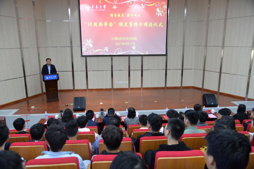 李建波代表学院对奖学金的创立者上海洲固电力科技有限公司以及学校教务处、学生工作处、合作发展处等相关部门的支持表示感谢。他介绍了学院“十三五”期间在人才培养、科学研究方面取得的标志性成果,表示“洲固奖学金”的创立和颁发一定会成为激励全院师生奋发进取的持久精神动力,成为学院和企业携手帮助优秀学子共创美好前程的“心灵基金”。