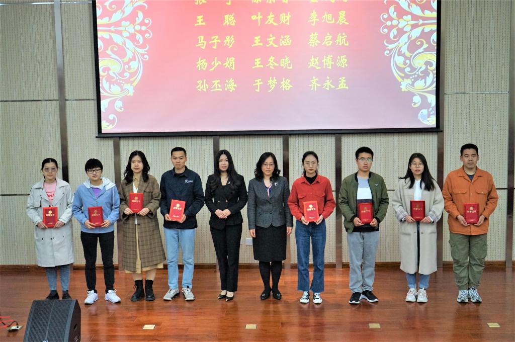 获奖学生代表王文涵、孙泽龙汇报了学习生活和考研就业情况,表达了对上海洲固电力科技有限公司奖学金资助和学校关心帮助的感激之情,表示将刻苦学习、奋发进取,以更加优异的成绩回报社会。