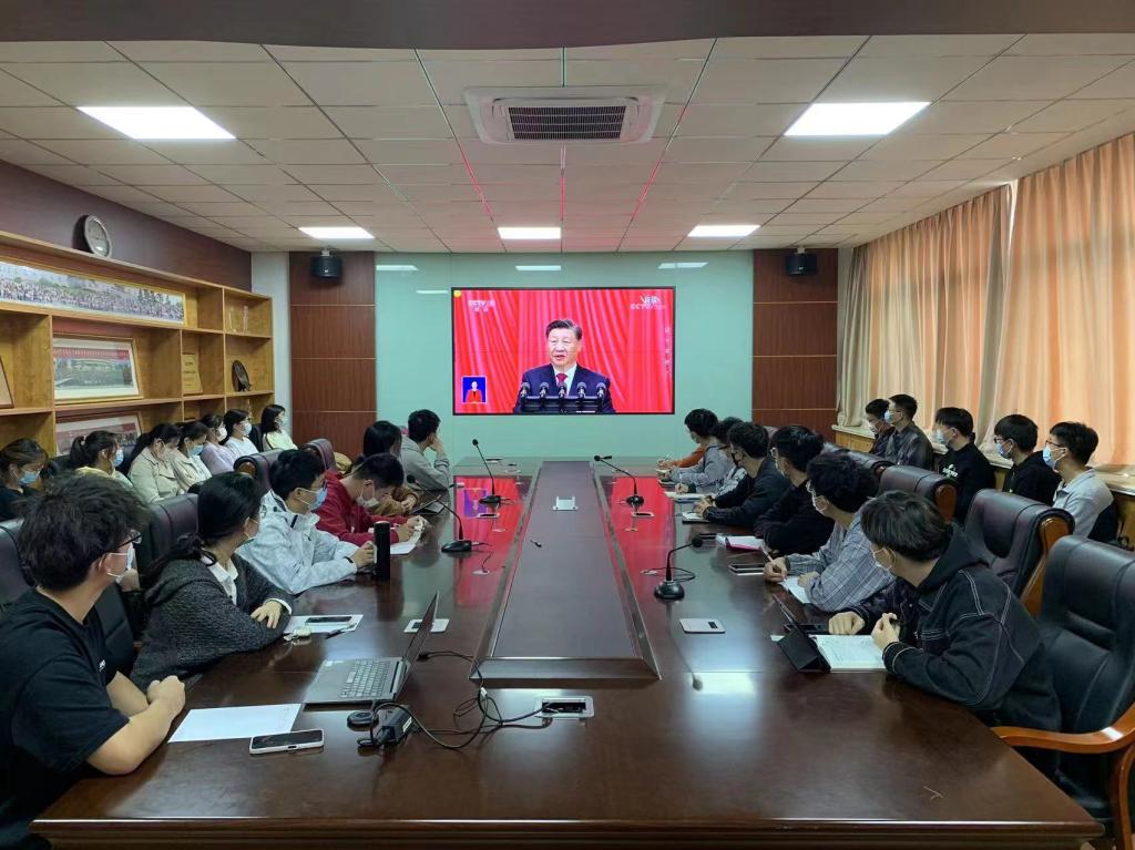 10月16日上午,草榴社区 组织全体党员干部、共青团员以理论学习中心组、党支部、团支部、宿舍为单位收看中国共产党第二十次全国代表大会开幕实况直播。院党委书记潘秋鸿,院长郭振波参加了在博知楼510会议室的集中收看活动,并和师生党员交流学习体会。