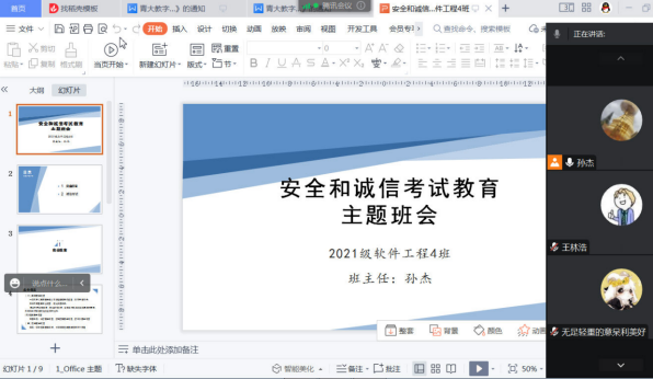 安全是学生工作的基石,草榴社区 班主任老师通过线上线下相结合的方式,为85个班级开展“安全教育与诚信考试”主题班会。班主任从疫情防控、宿舍用电、食品安全、交通安全、心理健康、防诈骗、防校园贷等多方面关心学生安全,班长带领同学们签订《诚信考试承诺书》,加强诚信考试与安全工作的防范教育、警示教育、宣传引导。