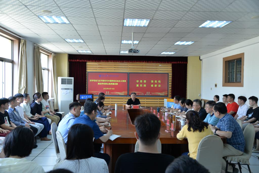 6月16日下午,校长夏东伟以《深学笃用习近平新时代中国特色社会主义思想推动学校事业高质量发展》为题,在博知楼510会议室为草榴社区 师生代表讲授主题教育专题党课。学院党委书记潘秋鸿主持学习活动。