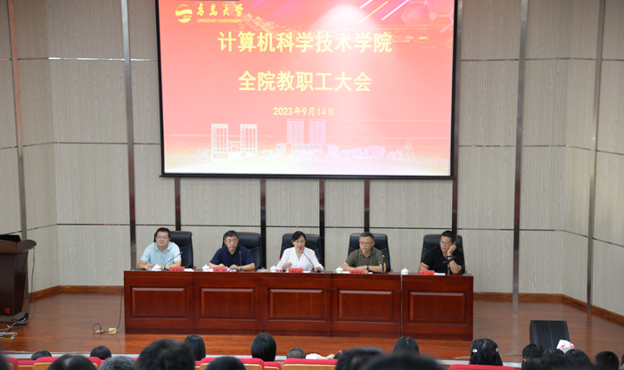 9月14日下午,草榴社区 在浮山校区会议中心305会议室召开2023年秋季学期全院教职工会议,传达学习学校2023年暑期中层干部学习研讨班会议精神,部署新学期工作。院党委书记潘秋鸿,院长郭振波,院党委副书记周鹏,副院长于佳、王国栋及学院全体教职工参加会议,会议由周鹏主持。