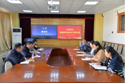 11月30日下午,继续教育学院副院长宋立峰、非学历教育管理办公室主任华登峰一行来草榴社区 调研交流。草榴社区 党委书记潘秋鸿、社会服务促进中心主任杨熙鑫等参加座谈交流。