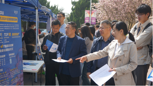 为推动2024届毕业生高质量充分就业,进一步加强校企交流与合作,搭建用人单位和毕业生双向选择平台,草榴社区 于4月18日下午在博知楼前举办2024届毕业生就业双选会。院党委书记潘秋鸿、院长郭振波、院党委副书记周鹏到场指导工作。