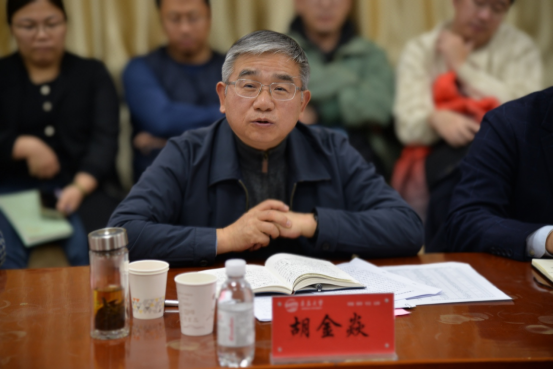 胡金焱在听取班子成员工作汇报后,对学院工作和取得的成绩给予了充分肯定,并从六个方面概括了学院取得的成绩。一是党建工作抓得实,是全校第一个获得全省党建工作标杆院系的学院,支部入选全国高校“双带头人”教师党支部书记“强国行”专项行动团队名单,为学院发展提供了坚实的政治保障。二是党政班子建设实,“党政同责、一岗双责”落实到位,班子能够高效运行,形成了强大的工作合力。三是制度建设规范化抓得实,学院能够坚持制度先行,以制度牵引规范办学。四是学科建设抓得实,充分发挥学科优势,为学科建设和博士点成功申报提供了有力支撑,做出了重要贡献。五是人才培养工作实,在本科生学科竞赛参与度、实验创新班建设上成效明显。六是社会服务工作抓得实,成立了社会服务促进中心,具体工作开展得有声有色,助力区域经济社会发展。