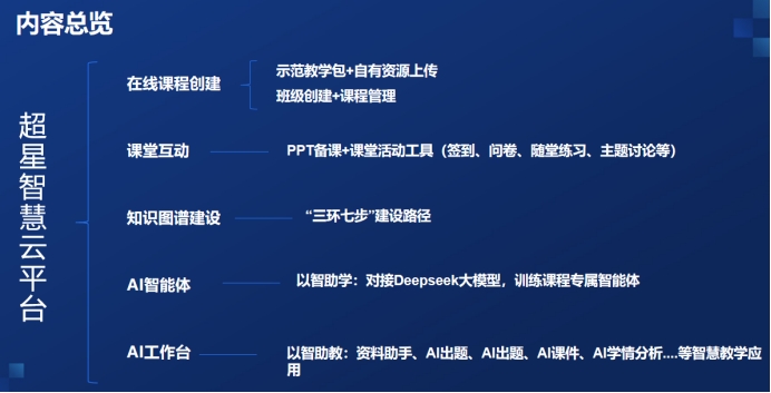 王彩玲老师从在线课程创建、课堂互动、知识图谱建设、AI智能体、AI工作台五个模块展开培训,重点讲述了课程团队建立、课程顶层设计、课程结构设计、图谱搭建、资源建设与关联、图谱效验、门户呈现以及AI智能体训练。培训内容丰富详实,不仅有理论知识的深度剖析,更具备极强的实操性,为学员们提供了切实可行的指导与借鉴。