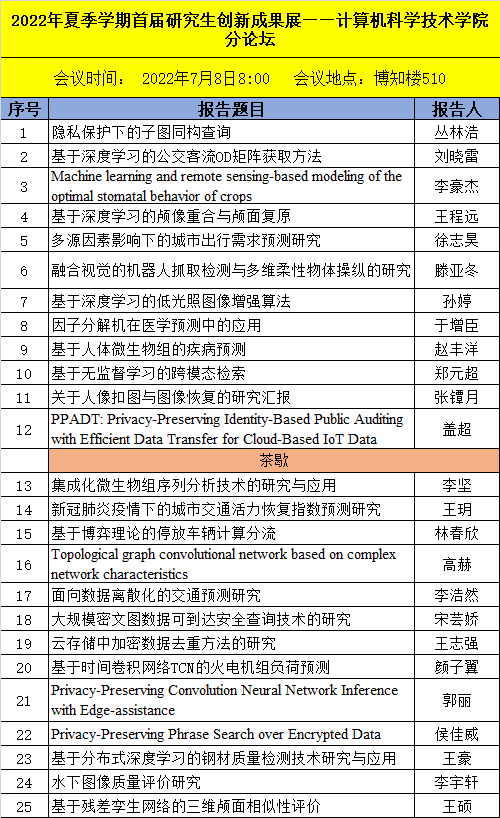 经学生积极申报、专家初审,本次成果展学院共遴选出25篇优秀学术报告,具体安排如下:
