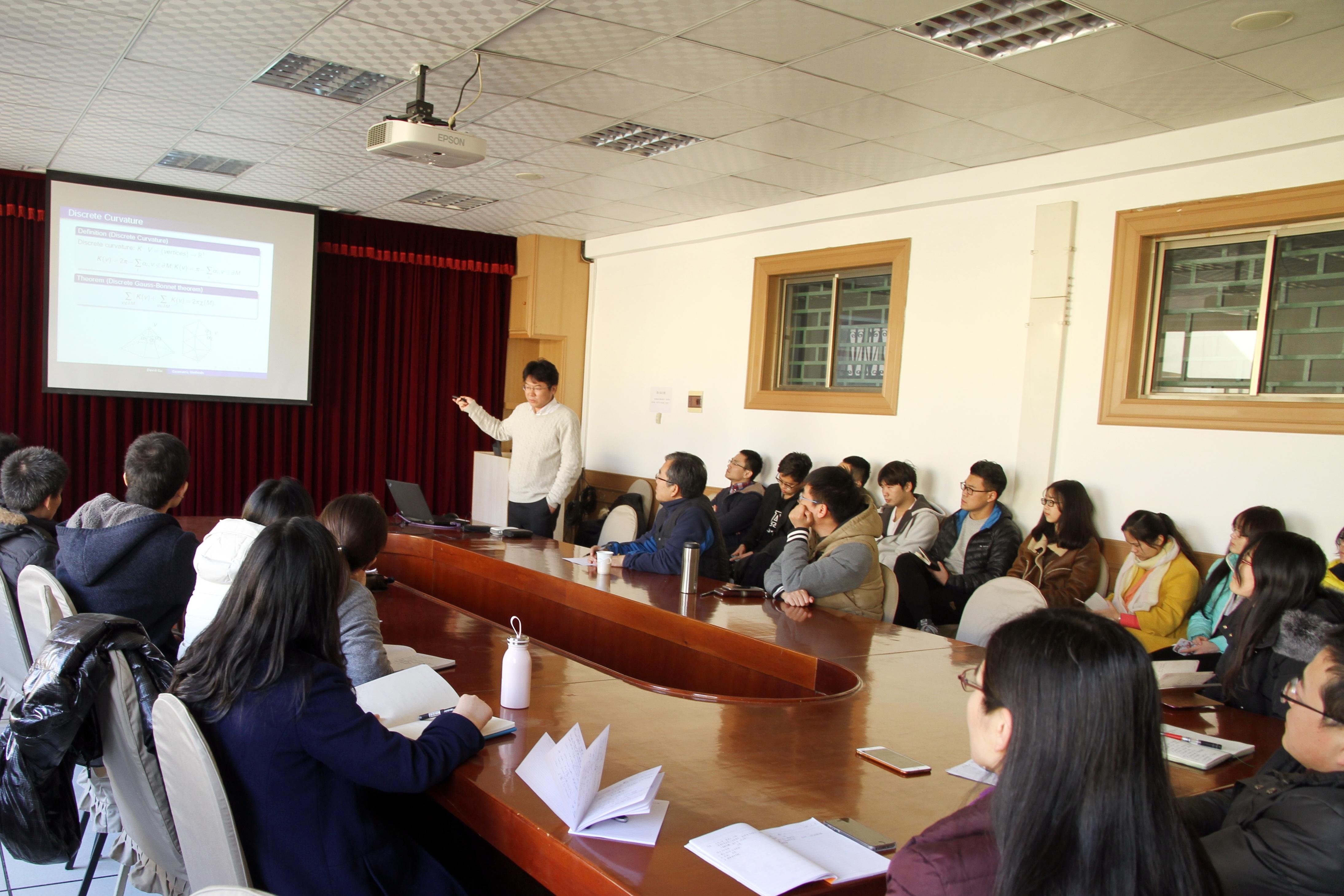 顾教授首先讲述了当前流行的AR、VR技术,然后转入这些流行技术背后所要迫切解决的问题和解决这些问题所用的理论方法。顾教授深入浅出的给大家讲述了抽象的数学理论:其中包括Ricci流理论以及其离散化方法、Teichmulller拟共性映射理论、最优传输理论。最后给大家展示了这些理论的在各计算机研究领域中的应用:医学影像、图形学、几何建模、计算机视觉以及无线传感网。顾教授对老师和学生提出的问题一一给出了精彩解答。