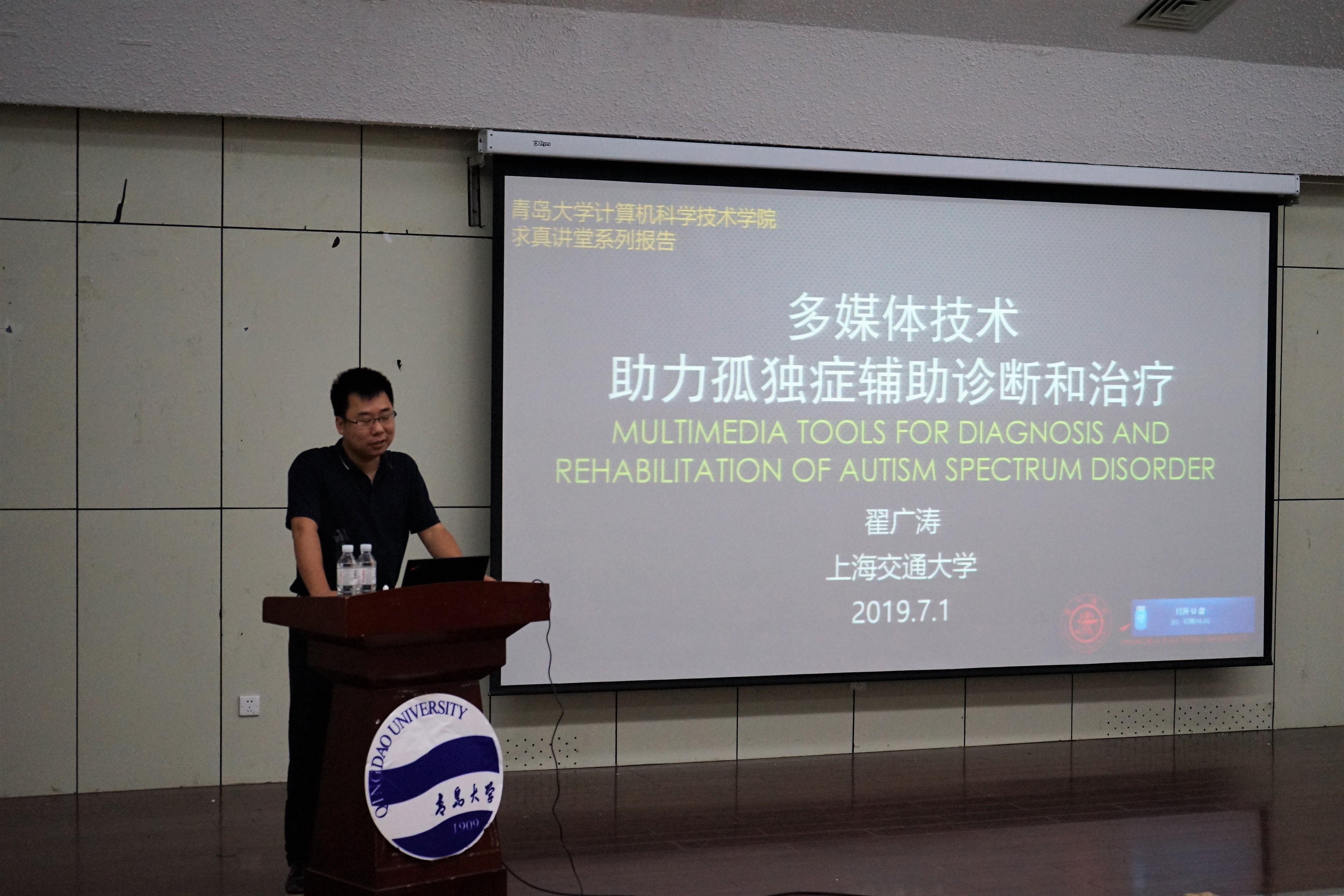 7月1日上午,上海交通大学著名教授翟广涛应邀在图书馆报告厅为草榴社区 师生作了学院夏季学期高端学术报告第一讲——《多媒体技术助力孤独症辅助诊断和治疗》。学院100余名师生代表参加报告会。