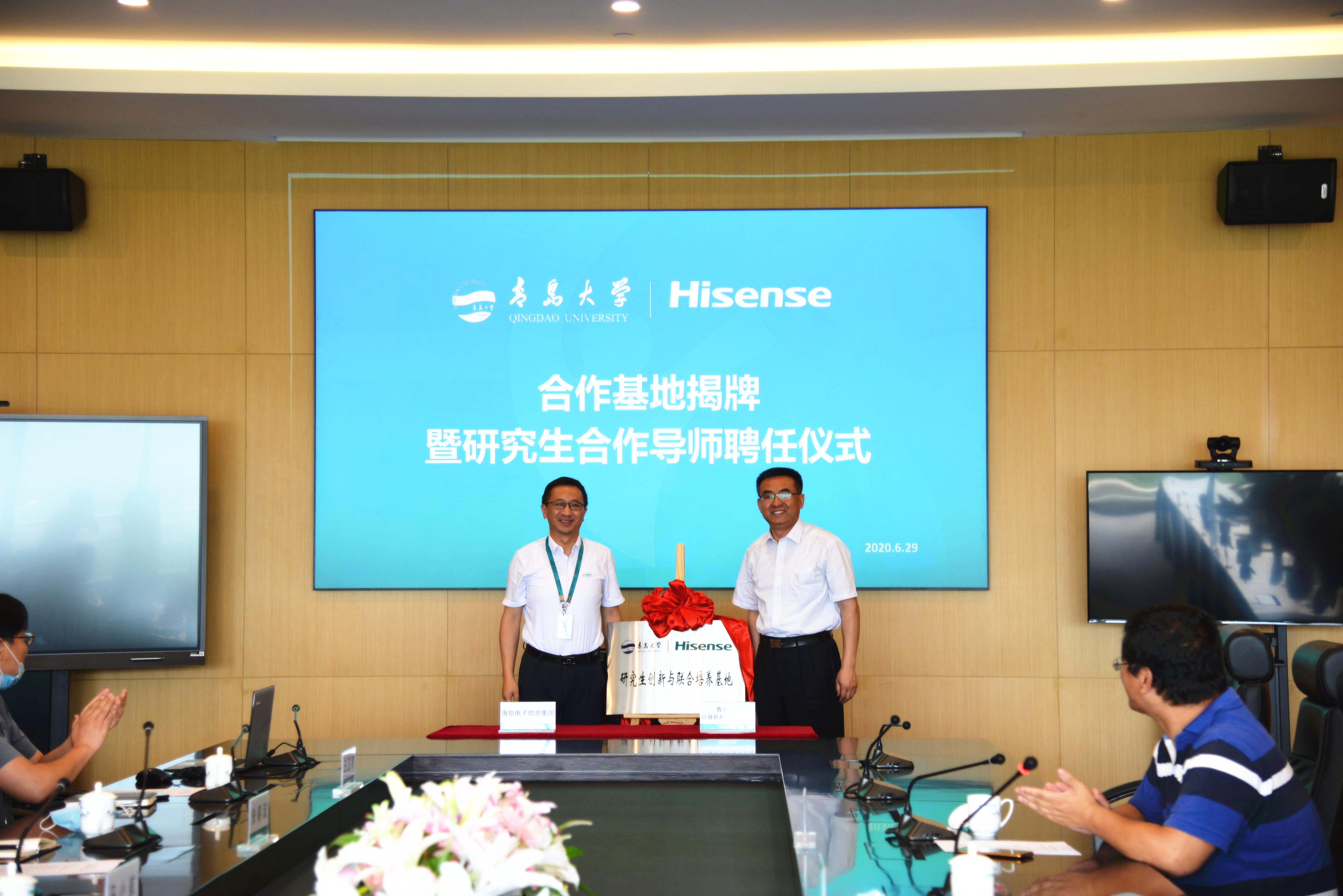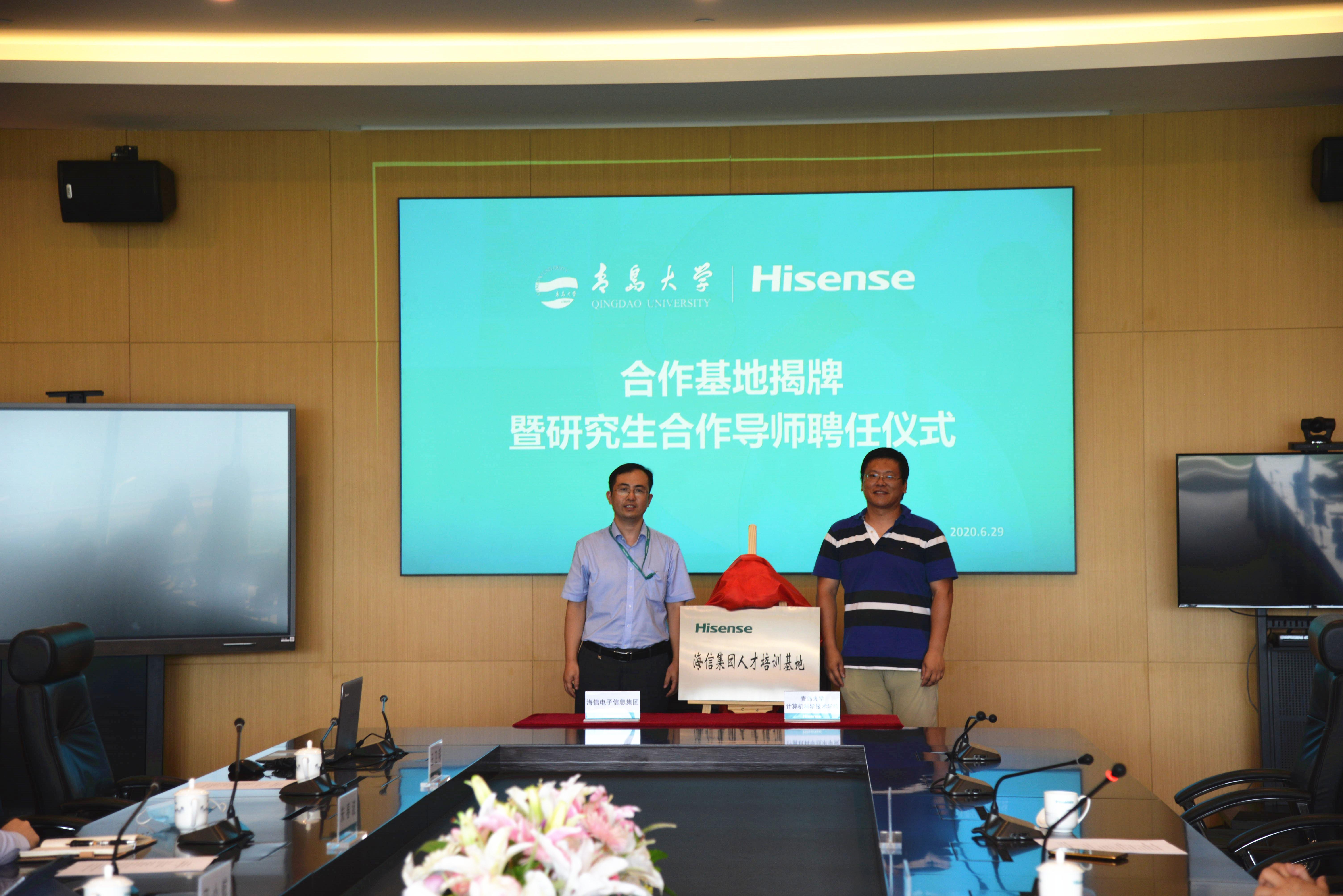 6月29日下午,草榴社区 与海信电子信息集团合作基地揭牌暨研究生合作导师聘任仪式在海信研发中心国际交流中心举行。海信电子信息集团常务副总裁马小航、海信集团人力资源部副总经理张龙吉、电子信息集团研发中心副总经理TOD、研发中心软件研发部副总经理王卫明、王飞,院党委书记尹增刚、副书记周鹏,副院长于佳、王国栋出席。
