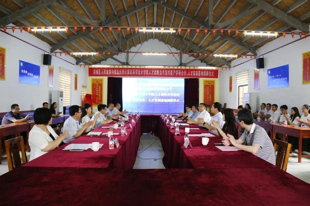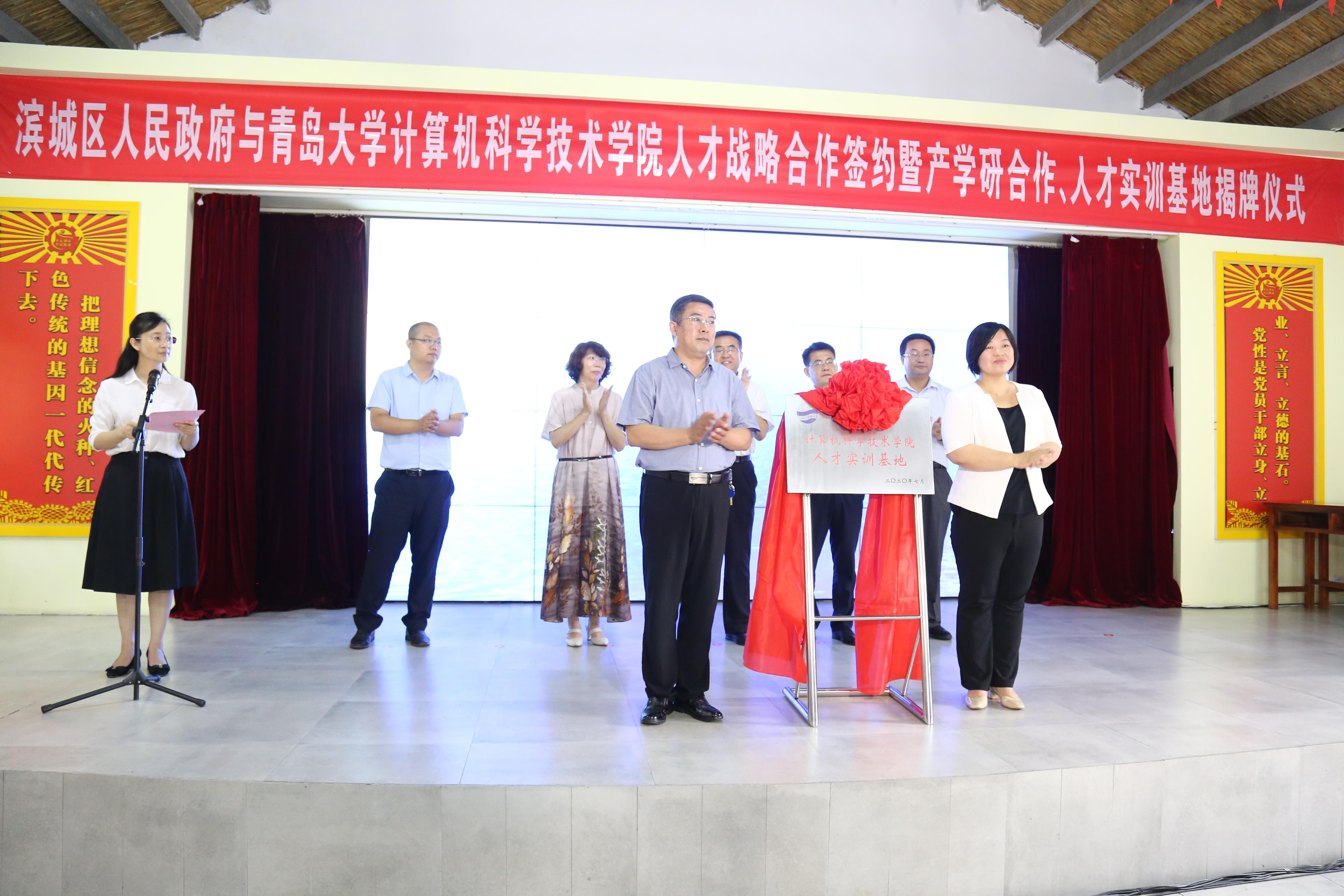7月10日上午,草榴社区 与滨州市滨城区人民政府人才战略合作签约暨产学研合作基地、人才实训基地揭牌仪式在滨州市滨城区杨柳雪“不忘初心党性教育基地”大礼堂举行。滨城区委副书记、区长张瑞杰,滨州市人力资源和社会保障局副局长于燕,区委常委、组织部部长王丽,副区长衣明东,杨柳雪镇党委书记曲婕,院党委书记尹增刚,党委副书记、院长李建波,副书记周鹏,以及滨城区有关部门负责人、草榴社区 教师代表和赴滨州市滨城区杨柳雪镇科技志愿服务团的全体同学参加揭牌仪式。