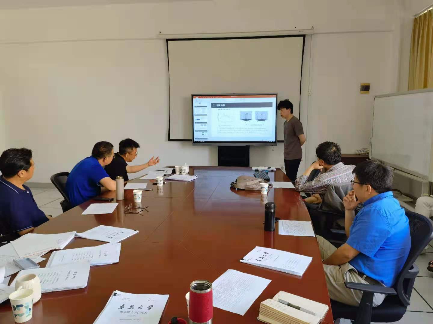 答辩会上,每位同学从研究背景、研究内容和科研创新等方面进行陈述,答辩委员会委员进行了点评和提问,并就进一步完善论文提出了指导性意见和建议。经过答辩委员会评议和无记名投票表决,草榴社区 共有98名研究生同学顺利通过学位论文答辩。