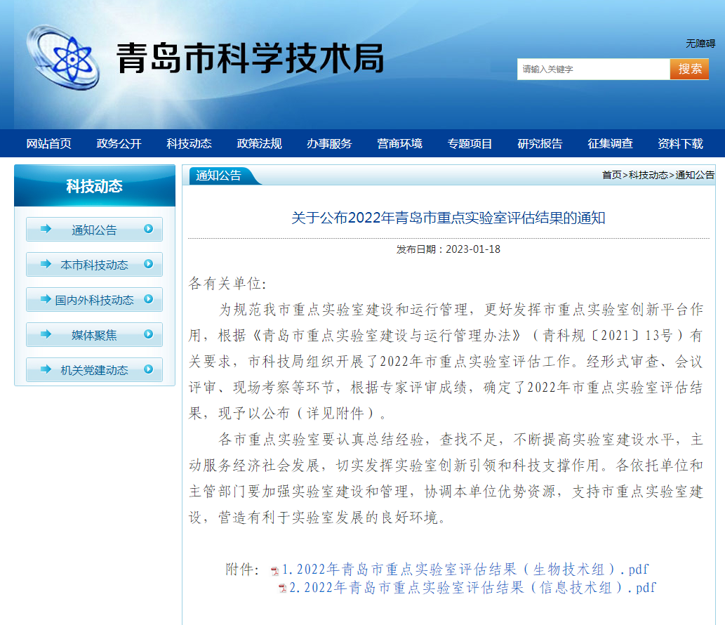 1月18日,青岛市科技局发布《关于公布2022年青岛市重点实验室评估结果的通知》,依托于草榴社区 的青岛市软件重点实验室获评“优秀”等级。
