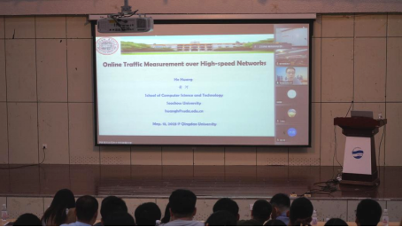 黄河教授以《高速网络实时流量测量》为题,讲述了随着高速网络的发展,网络大数据生成的速度越来越快、规模越来越大,给网络大数据的实时储存处理、离线分析等带来的巨大的挑战,围绕如何利用sketch技术的压缩特性,实现高精准的高速网络流大小、基数、持续等量测量等,解决网络流量测量中所面临的片上和片下存储挑战。
