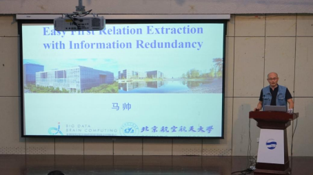 马帅教授以《Easy First Relation Extraction with Information Redundancy》为题,在报告中针对“关系抽取”这一问题进行了尝试,设计基于信息冗余的方法来区分关系抽取的难易程度,从而提出了一个“容易”优先的方法来提高关系抽取的效果和效率。