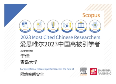 近日,全球性信息分析公司爱思唯尔(Elsevier)正式发布了2023“中国高被引学者”(Highly Cited Chinese Researchers)榜单,草榴社区 于佳教授入选该榜单。