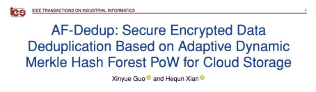 近日,草榴社区 信息安全专业2021级本科生郭歆越为第一作者的论文AF-Dedup: Secure Encrypted Data Deduplication Based on Adaptive Dynamic Merkle Hash Forest PoW for Cloud Storage发表在中国科学院一区期刊IEEE TRANSACTIONS ON INDUSTRIAL INFORMATICS(影响因子12.3),指导教师和通信作者为咸鹤群教授。