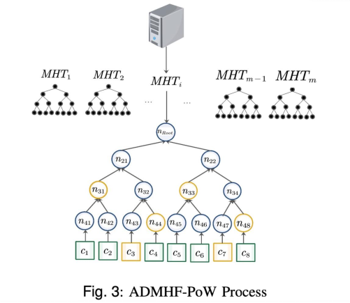 在此篇论文中,作者创新性提出了一种名为自适应动态莫克尔哈希森林(ADMHF)的型数据结构,用于工作量证明(PoW),并构造了一种名为AF-Dedup的加密数据去重方案。该方法可以用有效降低传统方案中因多次所有权验证尝试而导致的数据内容暴露的风险,有效解决了传统工作量证明方案无法保证小文件安全性的问题。