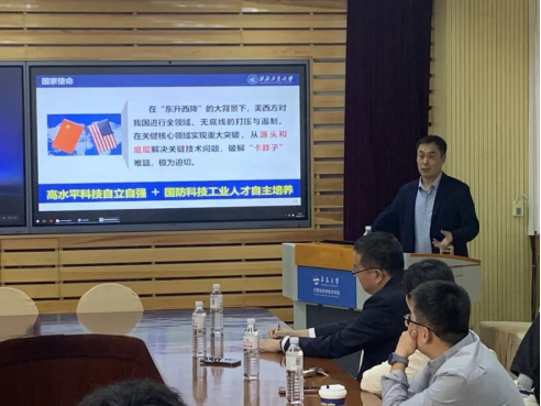 马教授由大到小、从国家使命到自我提升,多角度地介绍了自己科研工作的现实意义,并以“四个面向”为基础,提出了“高水平科技自立自强+国防科技工业人才自主培养”的口号。在与行业应用相结合的应用场景方面,马教授介绍了团队在耐高温传感器的研究,例如在校准火箭发射的问题上做出了巨大贡献,同时也介绍了与国家军事等合作课题,阐述了传感器在国防科技的生动案例。在传感器与人工智能相结合的科研方面,马教授对科研规划以及智能传感器的应用场景提出了独到的见解。