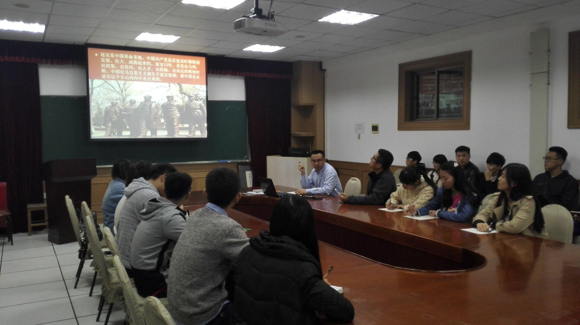11月2日晚,院党委书记尹增刚以《峥嵘岁月 辉煌成就 伟大精神——党中央在延安13年》为题,在博知楼510会议室为学生党员讲专题党课。院党委书记副书记于文以及本科生、研究生党员和入党积极分子60余人听了专题党课。