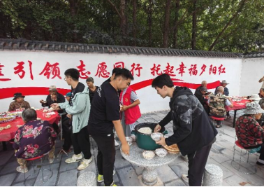 在临沂市郯城县红花镇省派“第一书记”帮包村,师生党员们参观了重兴村党群服务中心、幸福小院等。在幸福小院,党支部成员听取了重兴村在创新尊老敬老模式、推进“为老”志愿服务方面的有关情况,并参与到敬老爱老的志愿服务中。