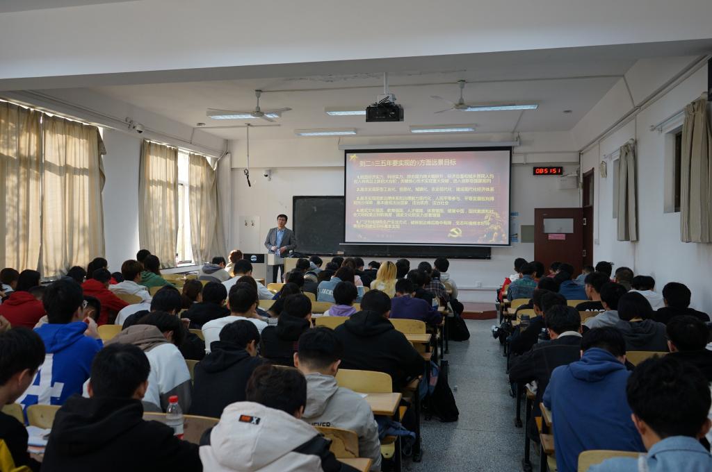 课程围绕“十九届五中全会精神解读”“怎样理解把握五中全会精神”“认清形势,坚定信念,为新时代‘中国梦’贡献青春力量”三个方面展开。