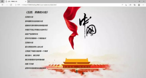 4月26日到5月4日,2020级、2021级同学在学院号召下用54行代码汇编出对祖国的爱,编写了感恩祖国、致敬青春的小程序。活动共收集作品32份,优秀作品已在学院微信公众号进行了展示,受到了热烈好评。