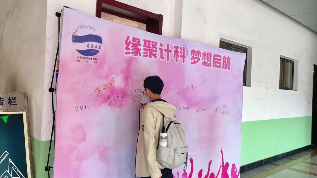 在浮山校区博知楼研究生新生报到点,迎新工作人员热情细致地为新生办理登记,并耐心指引流程、答疑解惑;提供行李寄存和搬运服务,协助新生搬运行李,完成报到登记。报到处还设有抽奖箱和新生签名墙,研究生新生纷纷抽取学院准备的纪念品并签名留念。