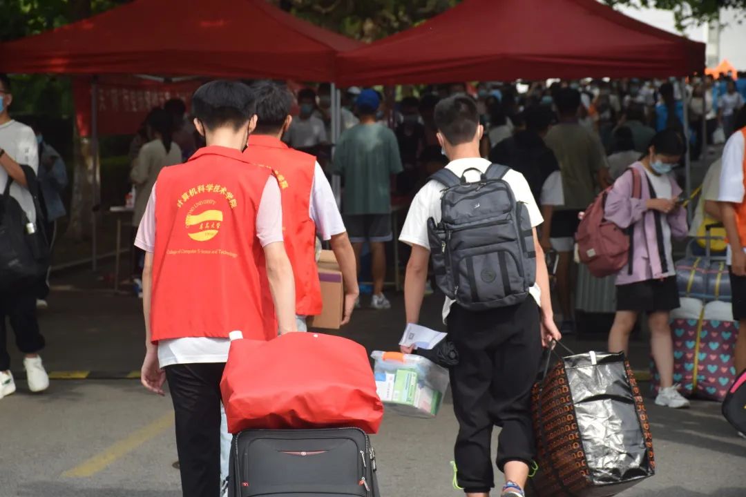 在金家岭校区东院本科新生报到点,2022级辅导员和迎新志愿者提前到达场地,安排引导、搬运物资、布置场地、整理资料,为迎新工作做好准备。志愿者们为新生介绍入学相关事宜、核对个人信息、指导新生领取物品,并为新生们留下“开学第一照”。草榴社区 “学生党员先锋队”充分发挥先锋模范作用,针对新生提出的问题耐心答疑,帮助新生搬运行李,引领他们前往宿舍。