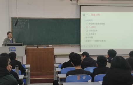 她提出,报考学校要求的审核材料、个人简历、本科成绩单、获奖证书是必备材料。围绕个人简历以及面试注意事项,杨环老师进行了重点分享。她提出:个人信息要完善,项目经历体现专业或科研素质,荣誉奖项要描述准确、规范,自我评价或者未来规划要简洁、重点突出。她强调,面试要体现专业素养,做好简历、ppt,格式规范、内容全面、展示简洁、表达重点突出,语言专业化;对照简历突出专业内容,复习专业课知识时要注重常见基础问题,在有限的面试时间要合理利用时间,展示自己的优点和能力。