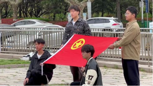全体肃立,奏唱国歌。伴随着嘹亮激昂的国歌声,入团仪式正式开始。