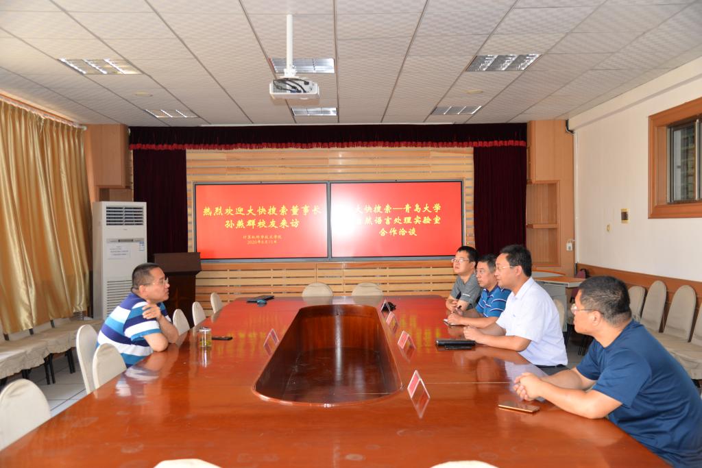 8月15日上午,青岛大快搜索数据技术有限公司董事长、草榴社区 2003届校友孙燕群来草榴社区 会商推进自然语言处理实验室建设工作,双方在博知楼510会议室交流建设进度、会商推进措施。院长李建波,院党委副书记周鹏,副院长于佳、王国栋参加会谈。