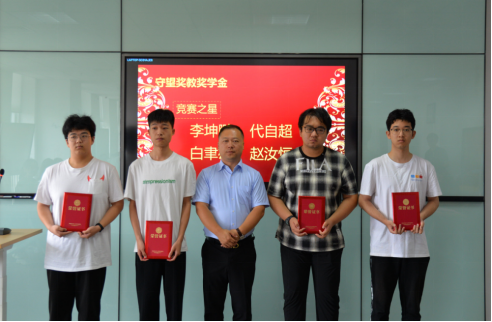 宋弈红、计晓斐、王海涛、张岩、瞿新吉五位校友分别为获得“实践之星”称号的伊秀红、祝海珍,获得“学业之星”称号的赵彤、赵雨轩、翟晓迪、史荣雪,获得“竞赛之星”称号的李坤鹏、代自超、白聿雄、赵汝恒,获得“考研之星”称号的毕经源、陈博锐、陈梦琦、陈同伟、邢振洋、曾凡、张骥远、翟树伟颁发荣誉证书。