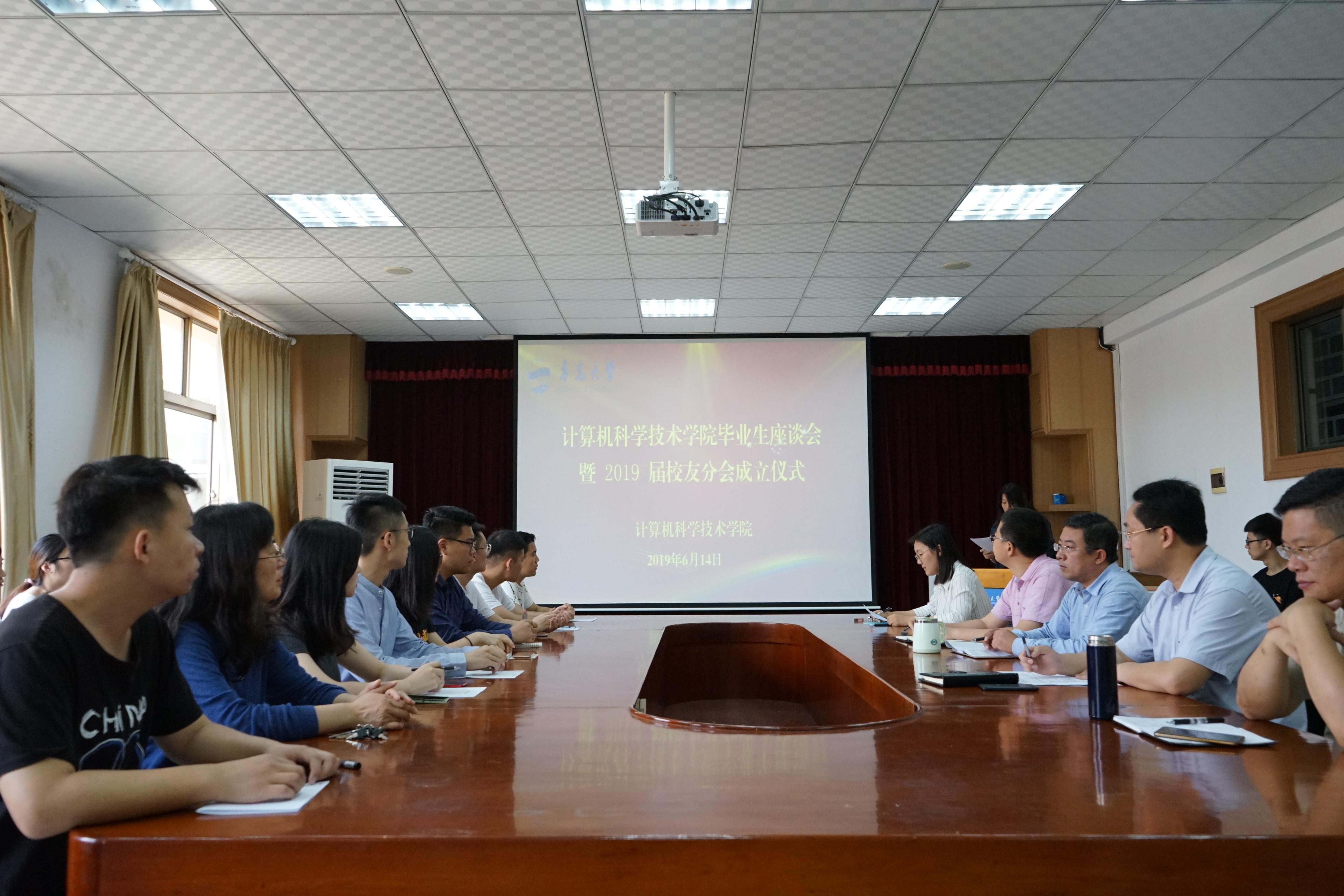 6月14日上午,草榴社区 在博知楼510会议室举行“毕业生座谈会暨2019届校友分会成立仪式”。院长李建波,院党委副书记周鹏,副院长于佳、王国栋,学生党支部书记于茜,毕业生辅导员刘伟,及毕业生代表出席仪式。院学工办主任姜彬主持仪式。