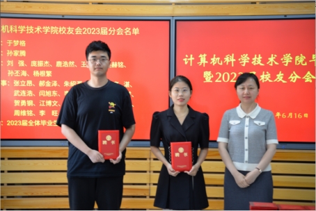 郭振波代表学院为2023届校友分会授旗。辅导员李俊宣读了草榴社区 校友会2023届分会负责人名单。学院领导分别为会长、秘书长、副会长、常务理事颁发聘书。