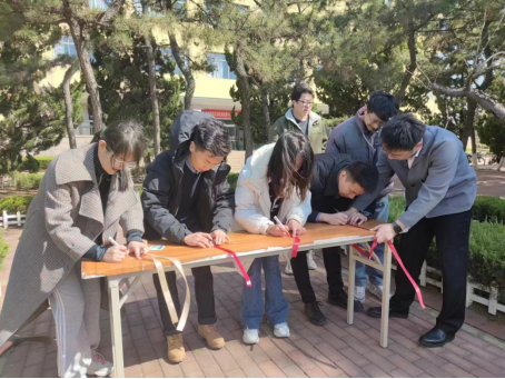 植树现场,大家迎春风、踏黄土,挥锹铲土、扶直苗木、培实新土共同努力之下,新栽的树苗在春风中昂然挺立,焕发出勃勃生机。校友及师生们在红丝带上写下对母校、对人生、对未来的祝福,对自然、对师长、对朋友的感恩。